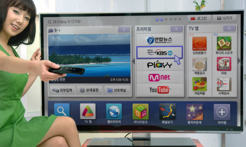 LG전자 홍보 모델이 오는 6일 미국 라스베이거스에서 개막하는 세계 최대 가전 전시회인 ‘CES(Consumer Electronics Show) 2011’에서 공개할 LG전자의 2011년형 가상 스포츠토토TV 전략제품(제품모델:55LW9500)을 선보이고 있다.