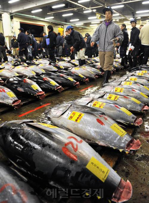 지난 5일 일본 도쿄의 최대 수산물 도매시장인 쓰키지(築地) 어시장에서 경매에 부쳐질 참다랑어들이 줄지어 있다. 이날 경매에서 342kg 나가는 홋카이도(北海道)산 참다랑어 한 마리가 3249만 엔(약 토토사이트 마초4000만원)에 낙찰됐다. 이는 ㎏당 경매가가 9만5000엔(약 128만원)으로 일본에서 기록이 남아 있는 1999년 이후 참다랑어 경매가로는 최고치다. 이 참다랑어를 사들인 도쿄의 고급 초밥식당 운영자는 “예상을 뛰어넘는 가격이지만 예상을 뛰어넘는 고급 참치여서 손님들에게 즐거움을 줄 수 있을 것으로 생각한다”고 말했다. [도쿄=AFP연합뉴스]