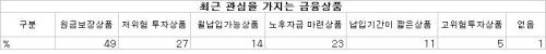설문조사 결과에 따르면, 토토사이트 은행 조회서은 현재 관심을 가지고 있는 금융상품은 원금보장상품(49%)과 저위험 투자상품(27%)을 가장 많이 선택했고, 10명 중 7명 이상이 안정적인 투자를 선호했다. 반면 고위험 투자상품에 관심을 가지고 있다는 응답은 5%에 불과했다. 또한 자신의 장기 재무계획에 위협을 미치는 요소로는 ‘시장에 대한 불확신과 자금 손실의 두려움‘(63%),’이 가장 많았고, ‘수익률이 좋은 투자 수단의 부족’(46%)’등이 상위권을 차지했다.