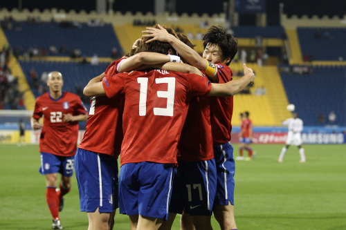 토토사이트 토토사이트가입 거절이 11일 오전(한국시간) 카타르 도하 알가라파 스타디움에서 열린 아시안컵 C조 한국 대 바레인 경기에서 첫 골을 성공시킨 후 이청용과 환호하고 있다.[사진=연합뉴스]