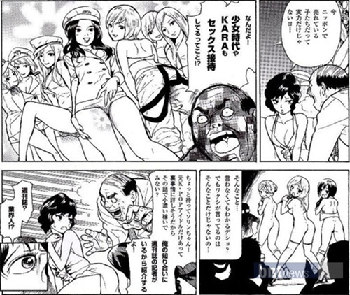 만화 속 여성들은 옷을 입지 않은 채 엉덩이 춤을 추거나 소녀시대의 무대의상을 입고 속옷을 노출하는 장면도 담겨 있다. 또 카라와 소녀시대의 이름이 그대로 거론되는 부분도 있어 오해의 소지가 다분하다. 내용 역시 전직 한국 아이돌 출신 호스티스가 기자에게 한국 가요계의 실상을 전달하는 설정으로 마치 사실인양 묘사되어 있다. 작가는 ‘취재를 바탕으로 각색했다’고 밝힌 바 있다. 성상납 사건으로 자살한 故 장자연의 이야기까지 거론하며 성접대, 자살, 비리와 로비 등의 단어가 반복되면서 한국 연예계의 부정적인 측면을 심어준다. 게다가 한국 정부가 소녀시대와 카라를 위해 국가정책으로 한 해 1조6000억엔(약20조원)의 예산을 투자하고 레고토토 엔터테인먼트사와 협력해 한류를 조장하고 있다고 간접적으로 표현하고 있어 논란이 예상된다.