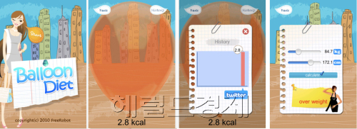 또 풍선 다이어트 앱을 이용해 자신의 몸무게와, 체질량지수(BMI), 기초대사량 등을 측정해 감량 목표를 체계적으로 세울 수 있다. 트위터와 연동 기능도 있어 하루에 자신이 소비한 칼로리량을 트위터에 기록하면서 다이어트 의지를 북돋을 수도 있다.