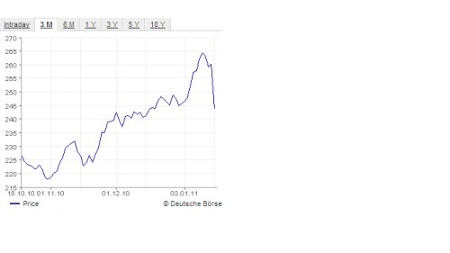 잡스의 병가 소식이 알려지면서 전일 독일 증시에서 애플 주가는 전일 대비 6.2% 떨어진 244.05유로로 장을 마쳤다. 뉴욕증시는 마틴루터킹 기념일로 휴장하면서 주가 움직임을 볼 수 없었지만 주식선물 시장에서는 전체 투자심리를 다소 위축시키는 역할을 했다.