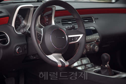 내부로 들어가니 실내 인테리어는 카마로의 옛 전통을 이어받은 동시에 군더더기를 없앤 덕에 깔끔했다. 계기판 한 가운데 놓인 트립컴퓨터를 통해 웬만한 정보가 모두 제공되고 있었고, 변속기 앞에 위치한 네 종류(오일온도, 오일압력, 밴속기오일온도, 배터리전압)의 아날로그 계기판은 색다른 느낌으로 다가왔다. 또 운전석 앞 헤드업 디스플레이는 최첨단 차량의 면모를 뽐내고 있었다.
