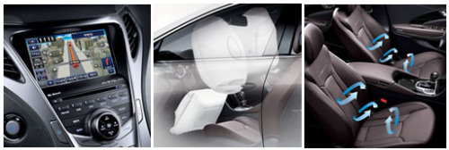 차 안에서는 내비게이션 시스템을 이용해 지상파DMB, 라디오, CD, 동영상 등의 다양한 멀티미디어 콘텐츠 재생은 물론 메모리 단자를 통해 MP3, 아이팟 등의 외부 음원을 쉽게 감상할 수 있다. 또 음성만으로 각종 기능의 손쉬운 조작이 가능한 음성인식 기능과 외부기기에 저장된 사진이나 이미지를 재생할 수 있는 전자앨범 기능도 있다.
