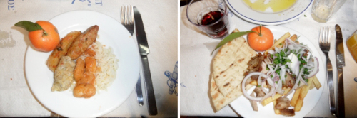 바비큐는 후추를 치면 그런대로 삼겸살 맛이 나는데 볶음밥은 불린 쌀을 볶은 데다 잔뜩 친 올리브기름으로 느끼하다. 이 때 와인을 조금 마시면 다시 입맛이 살아난다. 디저트로는 단맛과 비타민이 우리네 것의 서너배 쯤 되는 지중해식 귤이 무한정 제공된다. 단, 이는 겨울철에만 누리는 호사다.