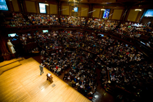 대형 콘서트장을 연상케 하는 하버드대 강의실에서 마이클 샌델 교수는 능숙한 오케스트라 지휘자처럼 학생들과 토론을 진행한다. 안방극장에 앉은 시청자들도 수십권의 책을 예습한 하버드대 학생들 옆에 앉아 샌델 교수와 보이지 않는 토론을 벌인다.