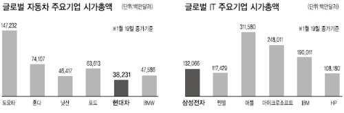 20일 헤럴드경제가 win 토토사이트와 자동차 부문의 국내 대표기업인 삼성전자와 현대차의 시가총액을 부문별 글로벌 주요 5개 기업과 비교한 결과 국내 기업의 증가 속도가 경쟁 기업에 비해 앞선 것으로 나타났다.