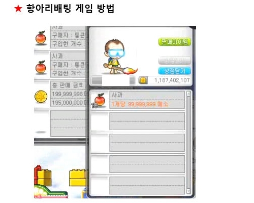 아이템 교환 사이트에서는 메이플스토리의 사이버머니인 ‘메소’ 1억당 현금 1만7000원, 던전앤파이터는 1000만원당 2만원 선에서 거래가 이뤄지고 있다. 이런 방식으로 일부 딜러는 월 700만원까지 이익을 취하고 있는 것으로 알려졌다.