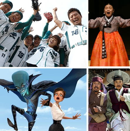 올해 설 연휴 극장가도 상차림이 푸짐하다. 주 요리는 웃음과 감동, 코미디와 휴먼드라마다. 우리 전통음식이 채우는 차례상이 그렇듯 극장가에도 한국영화가 대세다. 일단 지난 20일 개봉해 가족영화로서 흥행가도에 불을 댕긴 강우석 감독의 ‘글러브’가 기선제압을 했다. 애니메이션 ‘메가마인드’와 차태현 주연의 ‘헬로우 고스트’도 뒷심이 여전히 탄탄한 편이다. 여기에 ‘한복 입은 코미디영화’가 설 연휴 성수기에 출사표를 던졌다. ‘조선명탐정: 각시투구꽃의 비밀’과 ‘평양성’이다. 외화로는 중국 출신 스타배우가 출연하는 두 편의 할리우드 영화가 눈길을 끈다. 세스 로건과 저우제룬이 출연하는 판타지 영화 ‘그린호넷’과 저우룬파, 궁리, 존 쿠삭이 주연을 맡은 ‘상하이’다.