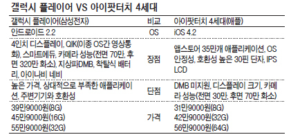 삼성전자의 스마트플레이어 ‘갤럭시 레프레 토토사이트 출시가 초읽기에 들어가면서 애플 ‘아이팟터치 4세대’와의 대결에 이목이 집중되고 있다. ‘갤럭시 레프레 토토사이트는 하드웨어 성능과 국내 사용자 편의성에서, ‘아이팟터치 4세대’는 가격 경쟁력과 애플리케이션 활용 등에서 비교우위를 갖는 것으로 파악됐다.