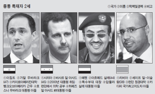 무아마르 카다피 리비아 최고지도자는 아예 두 아들에게 후계 경쟁을 시키고 있다. 한때 차남 세이프 알 이슬람(39)이 부상했지만 최근에는 동생 무타심이 떠오르고 있다.