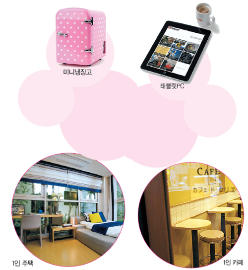 대용량을 뽐내던 가전제품도 ‘1인용 미니’에 자리를 내주고 있다. LG전자의 미니냉장고는 지난해 9~12월 판매량이 2009년 동기 대비 36%나 증가했다. 인터넷쇼핑몰에선 1인용 꼬마밥솥이 전년 대비 10%나 더 팔렸다.