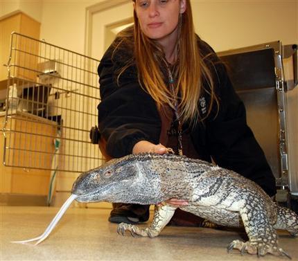 도마뱀은 신고를 받고 출동한 지역 동물 보호소 담당자 제니 쉘터는 먼저 고리 막대를 이용하여 도마뱀을 진정시켰다. 처음에이 도마뱀은 사람의 말에 순종하는 것처럼 보였지만, 곧 소리를 내며 공격적인 태도를 취하였다.