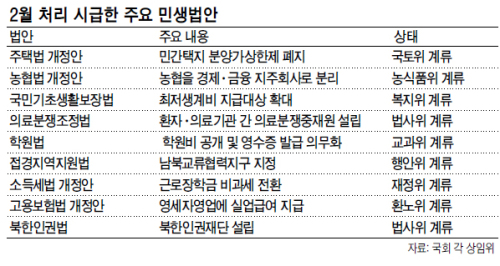 한나라당은 이번 임시롤 스포츠토토에서 처리해야 할 주요 법안 72건을 선정한 상태다. 여기에는 북한인권재단 설립 등을 내용으로 한 북한인권법, 야간 옥외집회 규제와 관련한 집회ㆍ시위법, 농협을 경제ㆍ금융지주회사로 분리하는 농협법, 미디어렙 도입과 관련한 방송광고판매대행법 등 쟁점 법안이 다수 포함돼 여야 간 충돌을 배제할 수 없다. 반면 민주당은 지난해 말 직권상정돼 처리된 법안의 대체입법에 우선순위를 두고 있다. 특히 구제역과 전세난 등 민생 현안이 심각한 상황에서 한나라당은 일단 이의 조기 해소를 위해 최선을 다한다는 입장이며, 민주당은 특위를 구성해 구제역 확산에 대한 진상규명 등을 강력히 촉구해나갈 방침이다. 전세난도 여야가 세입자 지원 확대와 전월세 인상 상한제 등 각자 대책을 강구해놓고 있어 정부 정책에 어떻게 반영될지 주목된다.