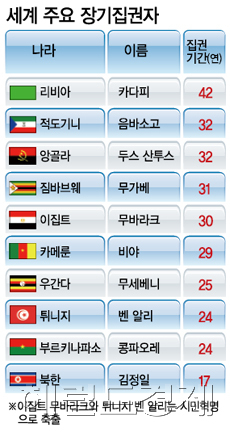리비아와 서북쪽 국경을 맞댄 튀니지에서 시작된 이번 시민혁명으로 23년 장기독재자 지네 알 알비디네 벤 알리가 물러나더니 리비아와 동쪽 국경을 맞댄 이집트의 30년 철권통치자 호스니 무바라크도 맥없이 쓰러졌다. 알제리와 예멘, 이란, 바레인, 요르단 등으로 들불처럼 번져나가는 혁명의 불길은 리비아를 사방으로 에워쌌고, 그간 별다른 움직임이 관측되지 않던 리비아에서도 지난 15일(현지시간) 밤 최초로 반정부 구호가 터져 나왔다.