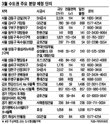 지난해 극심한 경영난을 겪었던 건설사들은 올 사업의 시금석이 될 3월 분양에 가장 경쟁력있는 ‘회심’의 작품들을 출품한다. 교통ㆍ교육 등 입지여건이 뛰어난데다 쾌적한 환경을 누릴 수 있는 자연친화적인 아파트가 대거 공급된다. 또 최근 중소형아파트 인기를 타고 중소형아파트가 대거 분양되는 것도 이번 3월 분양의 특징이다. 이와함께 저 에너지 주택 트렌드를 반영, 내부의 열손실을 완벽하게 차단하는 대규모 아파트 단지도 선보이고 있다. 전셋값 급등으로 주택매수를 고민하는 실수요자들에게는 그만큼 선택의 폭이 넓어진 것이다.