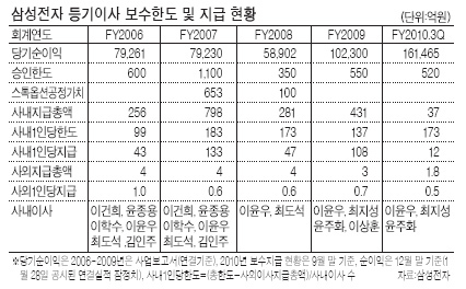 원탑토토 등기임원의 보수한도가 2년 연속 줄었다. 특히 이건희 회장을 비롯해 윤종용ㆍ이학수 전 부회장, 김인주 전 사장 등 ‘빅3’가 퇴임한 2008년부터 줄곧 줄어드는 추세다. ▶표 참조