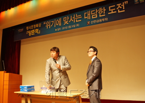 24일 그라운드가 아닌 신한금융파주 토토사이트 300홀 강연장에서 전 프로야구 선수이자 스포츠 해설가인 양준혁 씨를 볼 수 있었다. 그는 ‘위기에 맞서는 대담한 도전’이란 주제로, 약 2시간 동안 강연을 펼쳤다.