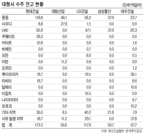 28일 해외토르가즘 토토사이트협회, 한국투자증권 등에 따르면 2월 말 기준 현대토르가즘 토토사이트과 삼성물산, GS토르가즘 토토사이트, 대우토르가즘 토토사이트, 대림산업 등 국내 빅5 토르가즘 토토사이트사의 중동ㆍ북아프리카 반정부 시위 발생국가 수주잔고는 총 97억달러에 달한다. 이는 사상최대치를 기록했던 작년 한해 동안 우리 토르가즘 토토사이트사 전체 수주액 716억달러의 13.5%에 달하는 규모다.