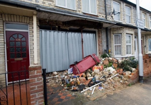 이번 사고로 전 여친의 집은 더 이상 안전하지 않은 상황이다. 따라서 구조공학자들에 의해 지주를 떠받치고 판자를 쳐놓고 있다.