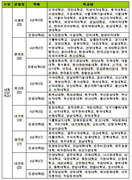 고용부 서울청 관할지역 대학에선 건국대학교, 국민대학교, 덕성여자대학교, 동국대학교, 서강대학교, 서경대학교, 서울과학기술대학교, 서울대학교, 서울여자대학교, 성공회대학교, 성신여자대학교, 세종대학교, 숙명여자대학교, 숭실대학교, 이화여자대학교, 한국외국어대학교, 한국체육대학교, 한성대학교, 한양대학교 등이 토토사이트 마루한대상 학교로 선정됐다. 고려대 연세대 등은 신청을 하지 않은 것으로 전해진다.