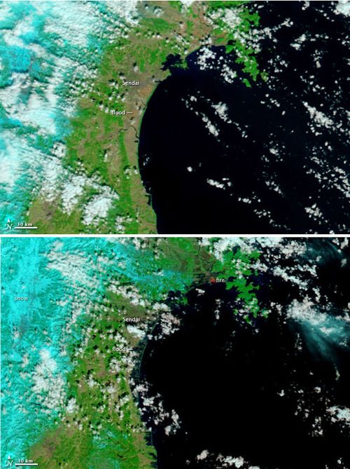 미국 항공우주국(NASA)이 12일 공개한 인공위성 사진을 보면, 가장 큰 피해가 난 센다이 지역 주변 해안선의 모습이 토토사이트 지분 발생 전후에 육안으로도 차이가 날 정도였다.