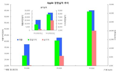 미국 애플은 업종과 지역 모두 ‘헤지’된다는 게 장점이다. 아이폰과 아이패드의 세계시장 침투율은 아직 낮다. 스티브 잡스만 건재하다면 스마트폰과 테블릿PC업계를 평정할 것이란 전망이 많다. 매출과 이익성장세도 놀랍다 ▶그래프 참조. 다만 해외주식 투자시 20%가량의 이익과세는 숙지해야 한다.