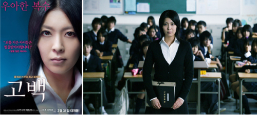 지난해 일본에서 신드롬을 일으켰던 영화 ‘고백’이다. 새 학년 진급을 앞둔 중1생들의 교실, 3월의 종업식에서 여교사가 “우리 반에 내 딸아이를 죽인 범인이 있습니다”라는 충격적인 ‘고백’으로 시작하는 이 영화는 지난해 여름 일본에서 개봉해 뜨거운 반향을 일으켰다.