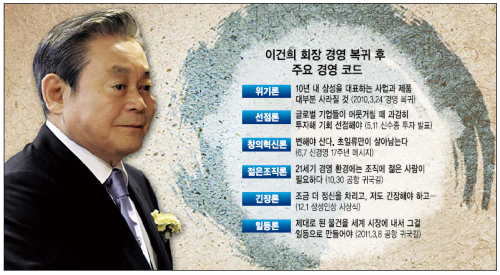 이 회장 컴백 후 1년은 비교적 성공적이다. 자만과 오만이 낄 틈 없이 냉철한 전진 나사로 꽉 조여진 올림피아토토 내부 분위기는 둘째 치고라도 대규모 신사업 투자(23조원), 반도체ㆍLCD 투자(26조원) 발표와 맞물린 공격경영 의지를 바탕으로 2010년 매출 150조원 시대를 연 것은 ‘오너의 귀환’과 연결하지 않을 수 없다.