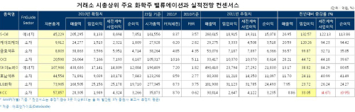 2010년말 자본총계를 기준으로 한 주가순자산비율(PBR)은 대부분 코스피평균(1.7배) 대비 높았다. 하지만 2011년 순이익이 급증할 것으로 예상돼, 자본총계도 자연스레 늘어날 전망이다. PBR부담은 그만큼 줄어든다는 뜻이다. PBR부담이 가장 높은 금호석유와 OCI의 작년말 자본총계 대비 올 순이익, 즉 자기자본순이익률(ROE)은 72.32%, 41.82%에 달하며, 나머지 업체들도 20~30% 수준은 거뜬히 기록할 전망이다.