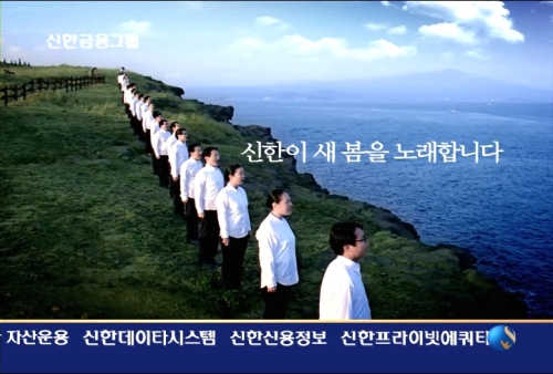 그 동안 유명 연예인을 광고 모델로 기용했던 콜로세움 토토은 이번에는 한반도 최남단 마라도에서 그룹 직원 60여명이 직접 참여해 새봄을 기다려온 신한 임직원들의 마음을 합창 형식에 담았다.