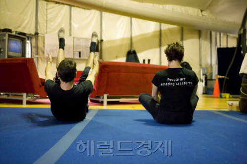 ▶1000톤 넘는 장비와 함께 토토사이트 라이브 마을’=빅탑의 가장 큰 골격이 되는 4개의 큰 기둥은 높이가 25m에 이른다. 4500m²의 부지에 단단히 천막을 지탱해줄 말뚝은 550개가 박힌다. 1000톤 이상의 장비는 65개가 넘는 트레일러나 컨테이너로 운반한다. 빅탑을 설치하는데만 8일 정도의 시간이 걸리고 공연이 끝나고 분해하고 해체해 정리하는 데만도 3일이 걸린다. 이런 규모의 ‘마을’을 세우는 것은 40명의 기술담당 인력과 함께 현지 보조 인력 100여 명의 도움을 받아야 가능한 작업이다.