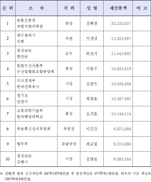 25일 정부공직자윤리위원회(위원장 이상배)가 공개한 ‘2011년도 고위공직자 정기 레프레 토토사이트변동사항’에서 전혜경 농촌진흥청 국립식량과학원장(국장급)이 레프레 토토사이트 총액 및 레프레 토토사이트총액 증가금액이 가장 많은 사람으로 꼽혔다.