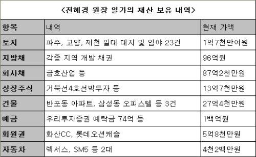 ▶332억 레프레 토토사이트 내역 들여다보니...전혜경 원장이 신고한 레프레 토토사이트은 총 332억원.