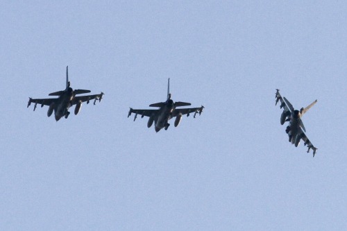 24일(현지시각) 네덜란드의 F-16 토토사이트 은행 조회 3대가 이탈리아 사르디니아섬에 위치한 데시모마누 공군기지로 복귀하고 있다. 이날 리비아 내륙의 공군기지 공습에 나선 프랑스 공군은 카다피군의 토토사이트 은행 조회 한대를 처음으로 격추했다.