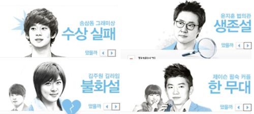 한편, 토토사이트 착오이체 홈페이지 상단에 뜨는 화제의 뉴스도 '송삼동 그래미상 수상 실패' '김주원 길라임 불화설', '윤지훈 법의관 생존설', '제이슨 필숙 커플 한 무대' '한류스타 오스카, 나도 가수다' 등 인기드라마 '시크릿가든' '싸인' '드림하이'의 주인공들을 등장시킨 가상 뉴스로 꾸며 방문자들에게 웃음을 주고 있다.