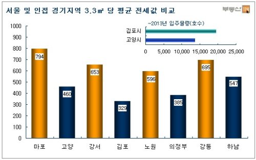 6일 부동산정보제공업체 부동산114 조사 결과, 4월현재 김포시의 3.3㎡당 평균 전셋값은 329만원으로 연접한 토토사이트 제작 데이터베이스 강서구 전셋값(653만원)의 절반 수준에 불과했다.