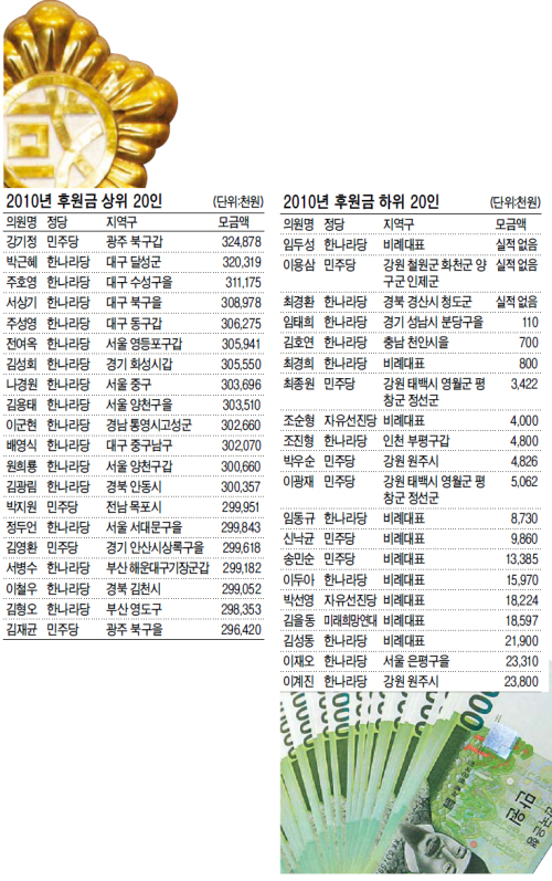 2010년 국회의원 후원금 모금액 살펴보니…