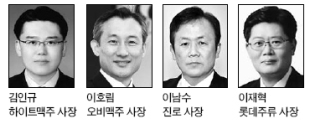 이에 따라 토토사이트 실수맥주의 구원투수로 나온 김인규(49) 신임 사장과 이호림(51) 오비맥주 사장이 맥주시장 1위 자리를 놓고 진검승부를 벌일 것으로 보인다. 주류시장에서 잔뼈가 굵은 이남수(59) 진로 신임 사장과, 신동빈 롯데그룹 회장의 두터운 신임을 받고 있는 이재혁(58) 롯데주류 신임 사장 간의 치열한 기싸움도 올해 소주시장을 뜨겁게 달굴 빅매치로 꼽힌다.