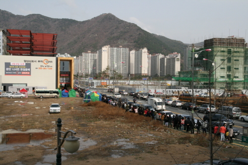 ▶양산신도시 = “지난 2005년 동탄신도시 공급 이후, 이렇게 줄 세워보기는 처음입니다. 전국에서 몰려든 브랜드토토(이동식 중개업소)과 투자자로 모텔ㆍ여관이 밀집돼 있는 구포역 인근 방잡기가 하늘의 별따기라는 얘기가 나올 정도입니다”
