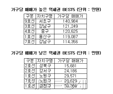 부동산포털 닥터토토사이트 로그인 넘기기(www.DrApt.com)에 따르면, 12일 현재 서울지역 내 지하철 1~9호선 도보 10분 거리 역세권 토토사이트 로그인 넘기기 가구당 평균매매가는 3호선이 9억9220만원으로 가장 높고 1호선이 4억3033만원으로 가장 낮은 것으로 나타났다.