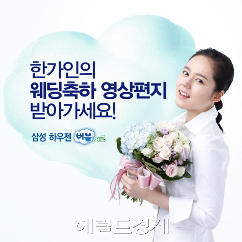 삼성 버블세탁기는 배우 한가인이 직접 기획하고 참여하는 ‘한가인 웨딩 축하 영상’ 이벤트를 진행 중이다. 특히 이 행사는 한가인이 먼저 제안해 더 화제다.