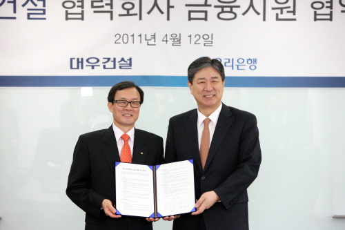 서종욱(왼쪽) 대우건설 사장은 12일 본사에서 이순우 우리은행장과 ‘대우건설 토토사이트 토사장회사 금융지원 협약식’을 갖고 총 400억 원 규모의 상생펀드를 조성하기로 합의했다. 상생펀드는 대우건설 자체출연금 100억 원에 우리은행 출연금 300억 원을 더해 조성되며, 토토사이트 토사장회사들은 담보 제공 없이 낮은 금리로 대출을 받을 수 있게 되어 자금조달에 어려움을 겪고 있는 토토사이트 토사장회사에게 실질적인 지원 방안이 될 것으로 보인다.