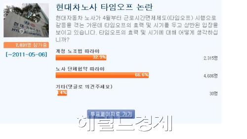 스포츠토토 베팅샵(근로시간면제) 적용을 둘러싼 현대자동차 노사간 갈등이 이어지는 가운데 그 해법과 관련한 네티즌들의 투표가 진행되고 있어 주목된다.