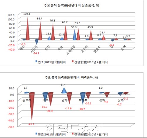 대파, 시금치, 당근, 마늘, 고춧가루, 고구마,무, 오이 가격은 작년토토사이트 포스 오른 반면,풋고추, 배추, 양파, 토마토, 감자,상추 등은 가격이 하락한 것으로 나타났다.