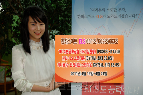 한화증권은 19일~21일 3일간 100%원금보장형 POSCO-KT&G 조기카지노 토토형 ELS 와 최대 55.8%(연18.6%) 한화-LS 스텝다운 ELS, 최대 63.0%(연21.0%) 하나금융지주-한진해운 스텝다운 ELS 3종을 각각 100억원 한도로 판매한다.