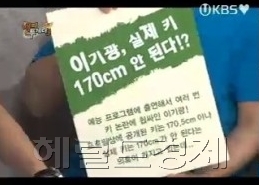 21일 KBS‘해피투게더’에 출연한 win 토토사이트은 MBC‘일요일 일요일 밤에-뜨거운 형제들’ 출연 당시 박명수의 발언으로 논란이 됐던 키에 대해 “정확히 170cm이다”라고 주장했다.