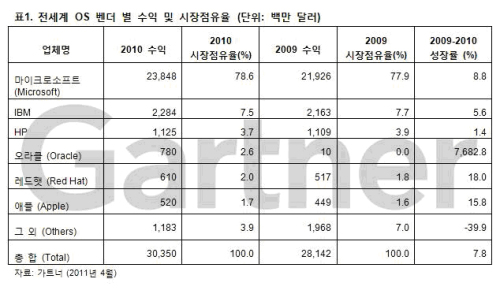 전 세계 운영체제(OS) 소프트웨어 수익이 2009년보다 7.8% 와이즈 토토해 2010년 304억달러의 규모를 기록했다고 가트너가 밝혔다.