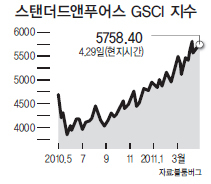 2일 블룸버그에 따르면, 24개 상품가를 반영한 스탠더드앤푸어스(S&P) GSCI 지수는 지난 4월에만 4.4% 상승해 8개월째 상승랠리를 이어오며 2008년 10월 이래 최고점을 찍었다. 이에 비해 MSCI 주가지수는 지난해 12월 이래 3.9% 상승했으나 상품가 상승세를 따라잡지 못했고, 같은 기간 미 마스터 토토사이트 인덱스는 3.9% 하락해 33개월래 최저치를 기록했다. 뱅크오브아메리카 메릴린치의 글로벌브로드마켓인덱스에 따르면, 이 기간 채권 수익률은 평균 0.9% 오르는 데 그쳤다.